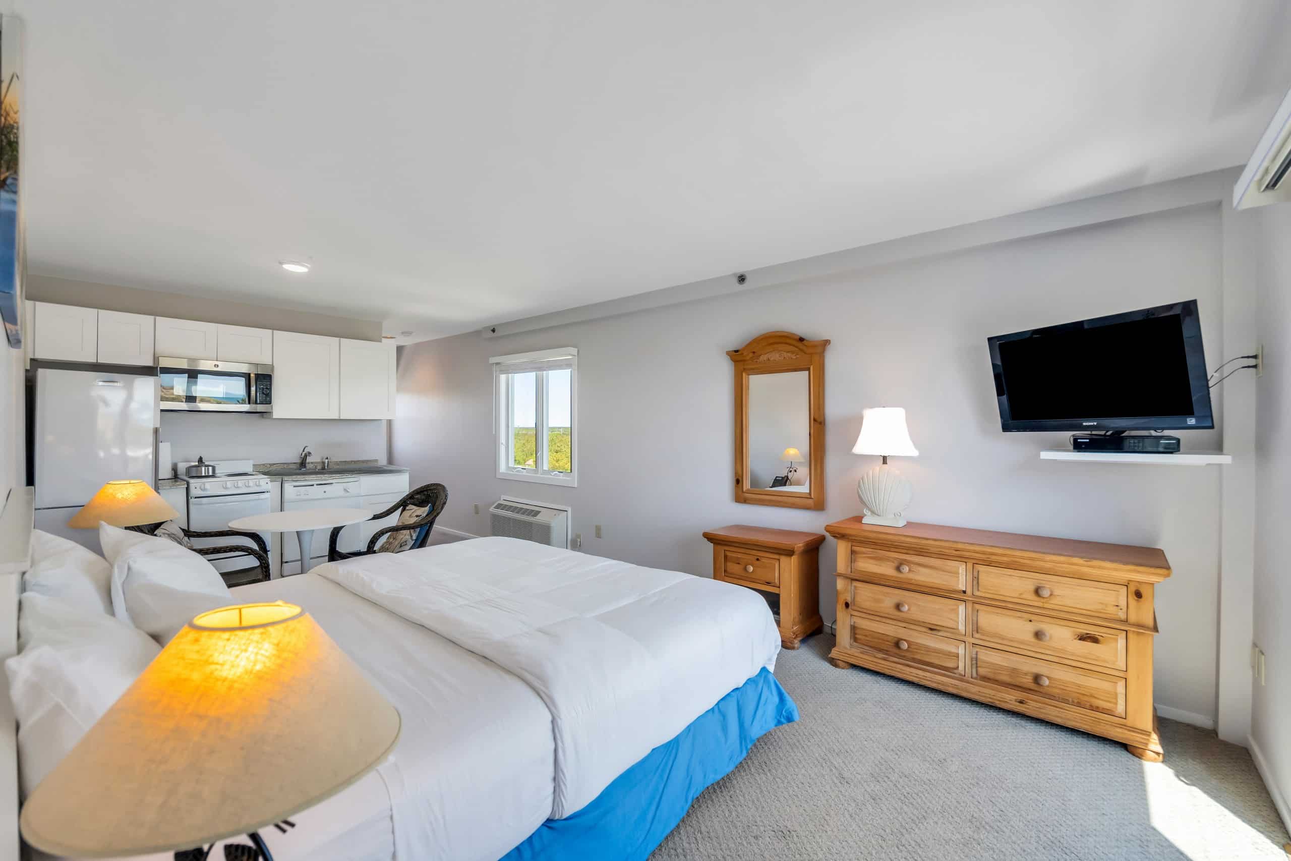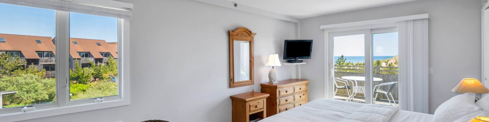 350 sqft rental unit apartment: studio type and 1 bath apartment; a few steps from the beach; located on the second floor; dune, bay, and ocean views; king-sized bed; fully equipped kitchens, linens, towels; private decks; air conditioning; wifi; free on-site parking; cable TV; beach, pool chairs. and umbrellas (on a reservation basis).